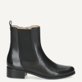 - Block heel, logo appliqué, inner shaft made of stretch material for maximum comfort, decorative stitching, round toe