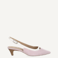 - Patent leather upper in crumpled patent look (flat, fine pleat structure guarantees optimum flexibility and prevents hard creases), metal fastening with embossed logo and stretch insert, block heel, tapered model, fine pastel pink shade, breathable, mini buckle application with logo, breathable, vintage look