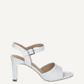 - Silver metal fastening, block heel, high heel in a timeless design, ideal for summer
